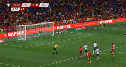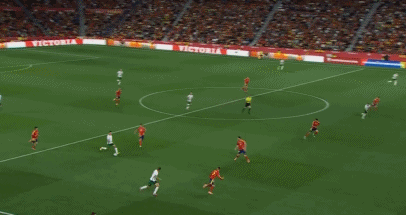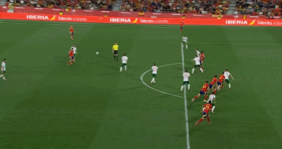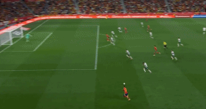 第79分钟,西班牙连续快速传递,阿莱克斯-加西亚左翼传中,切尔内夫解围时不慎将球铲入自家球门,3-0。