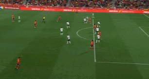第35分钟,勒诺尔芒头球摆渡,梅里诺头球接力冲顶破门,1-0。